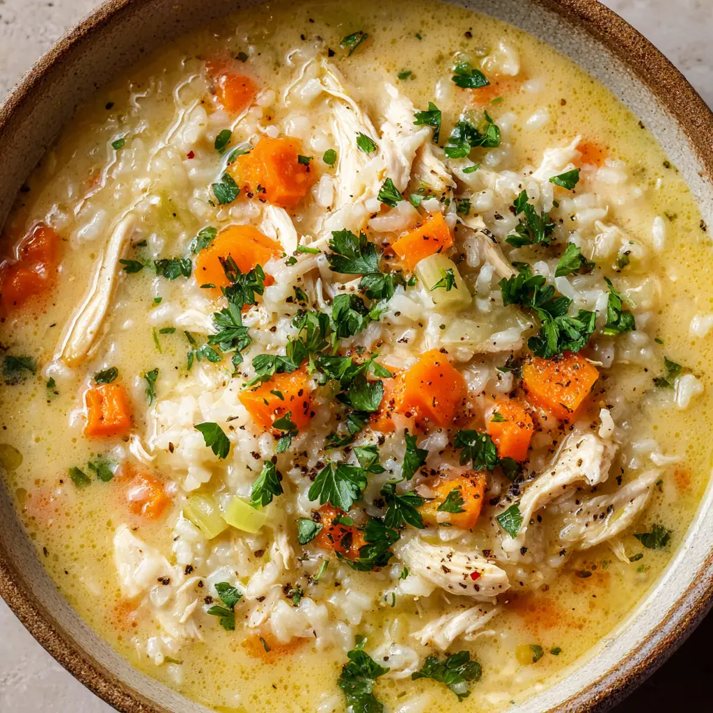 Golden & Velvety Creamy Chicken and Rice Soup