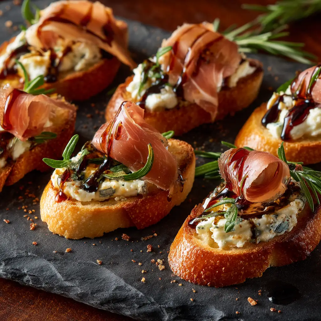 - Rustic Dark Slate Platter: The ideal serving vessel to create a moody, highly contrasting background that makes the golden crostini pop.
