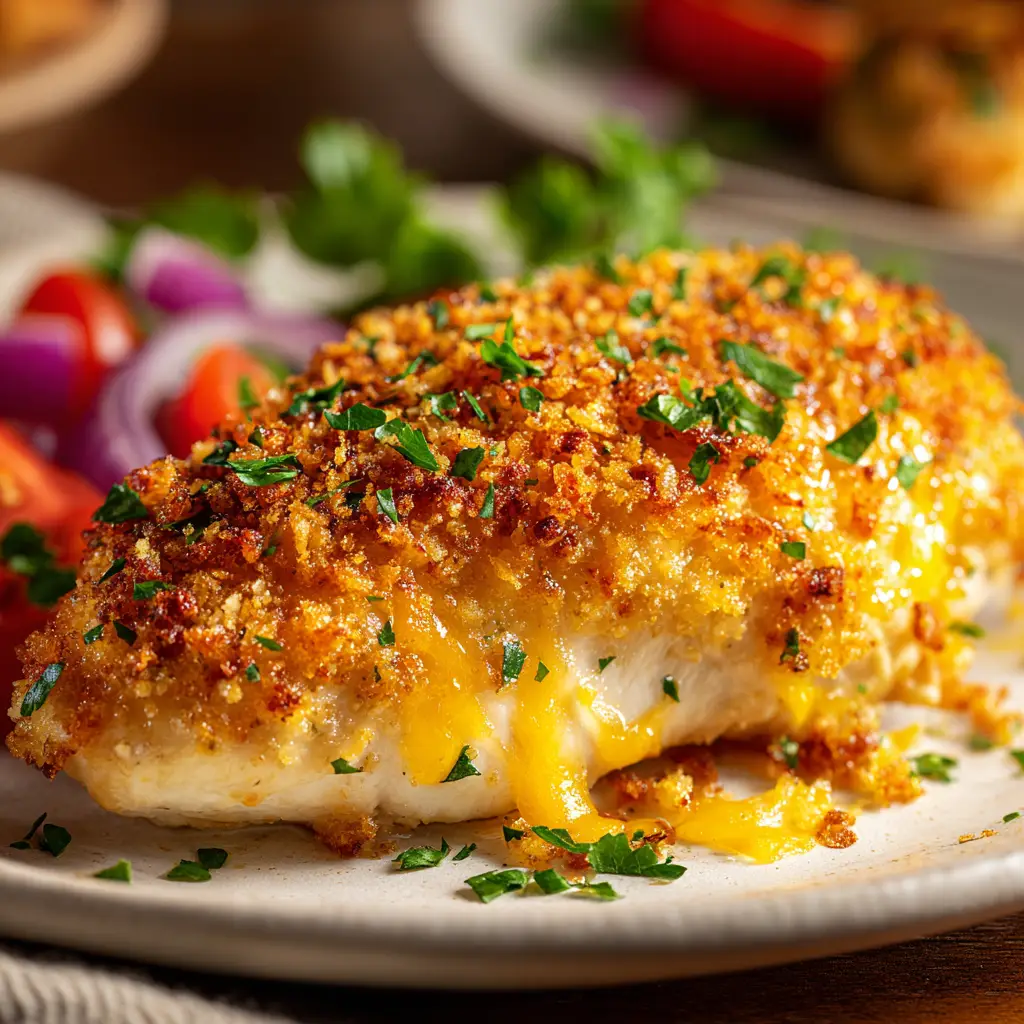 • Incredibly Flavorful: The combination of sharp cheddar, pungent garlic, and fresh chives creates a savory crust that perfectly complements the tender chicken.