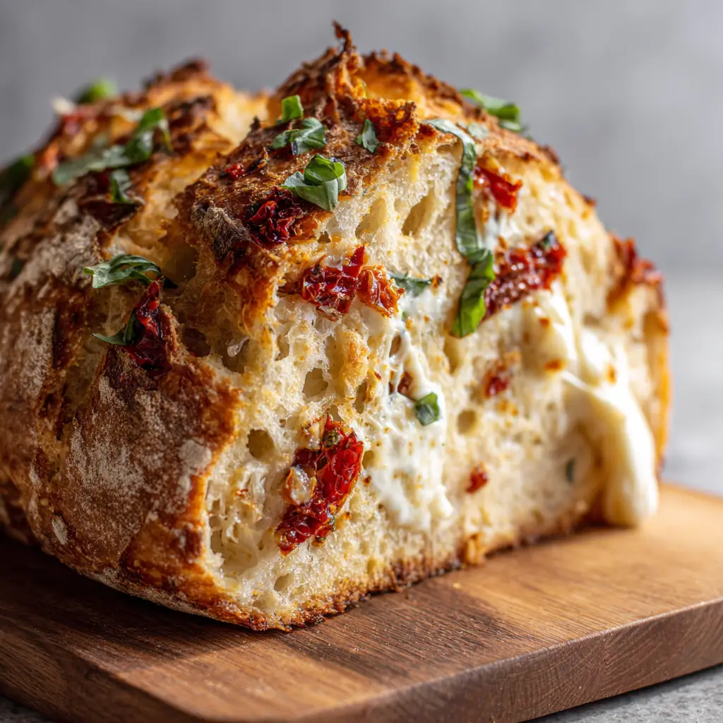 This recipe is more than just a set of instructions; it’s a guide to creating a truly impressive loaf of artisan bread that looks and tastes like it came from a high-end bakery. The combination of tangy sun-dried tomatoes, gooey mozzarella, and fresh basil is simply irresistible. Get ready to fill your home with the incredible smell of baking bread!